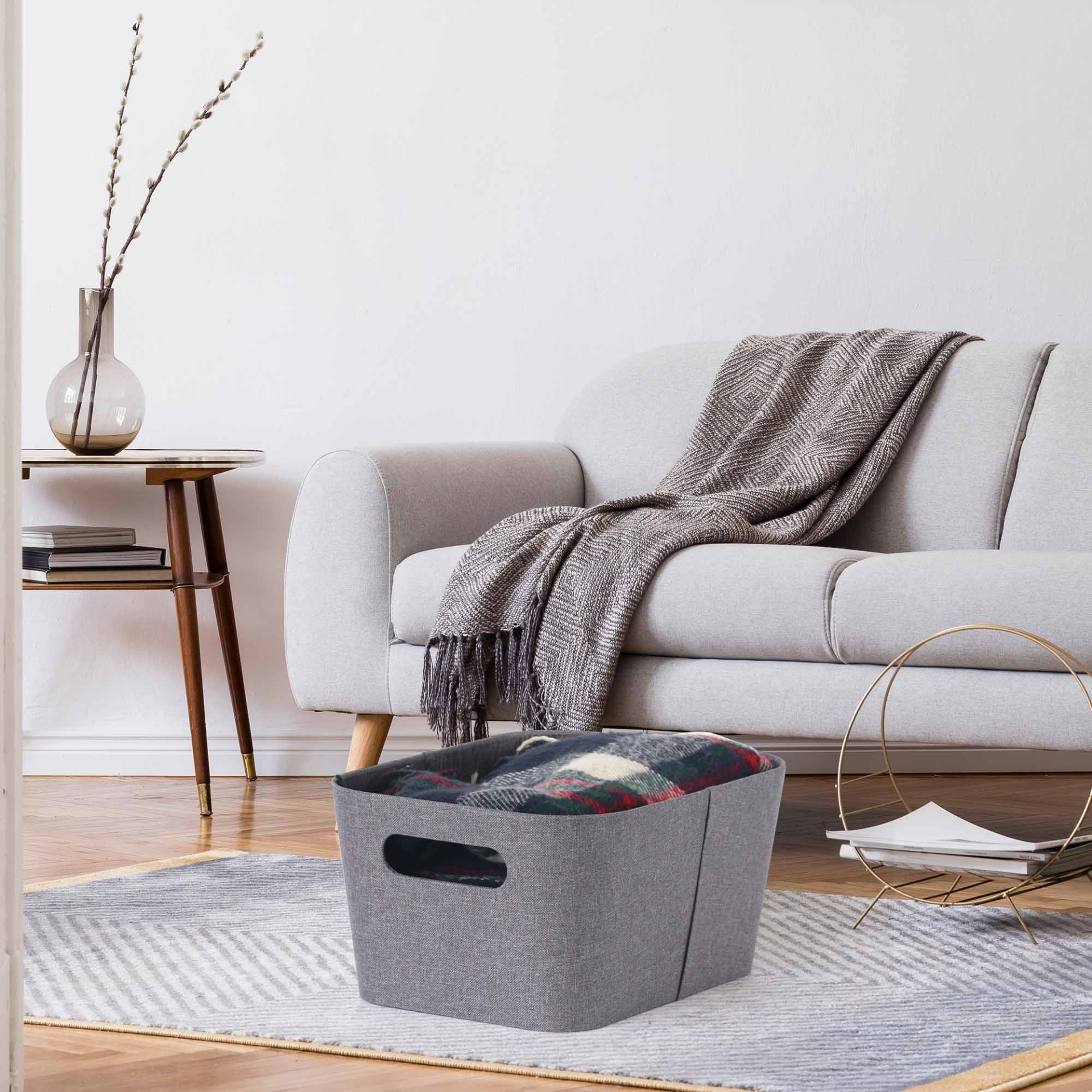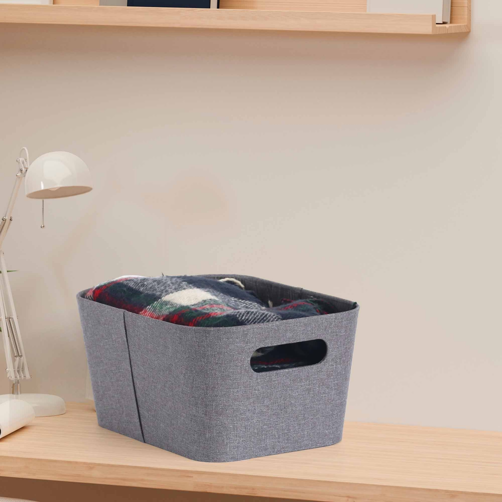 CAJA PLEGABLE FORRADA EN LINO MANIJA DE MADERA (L)