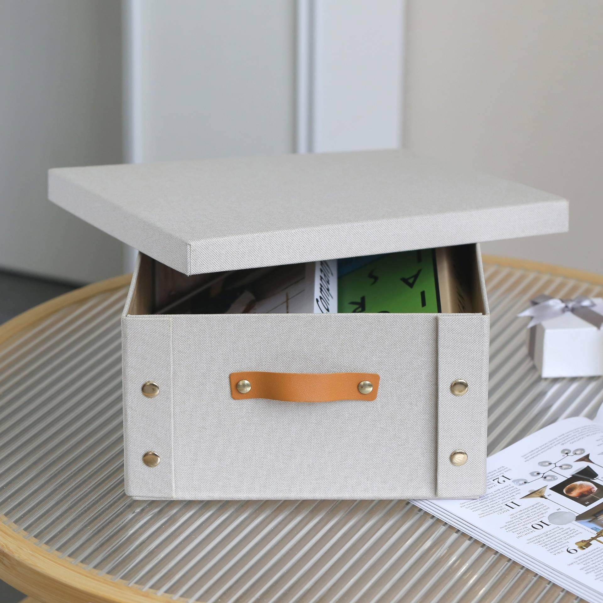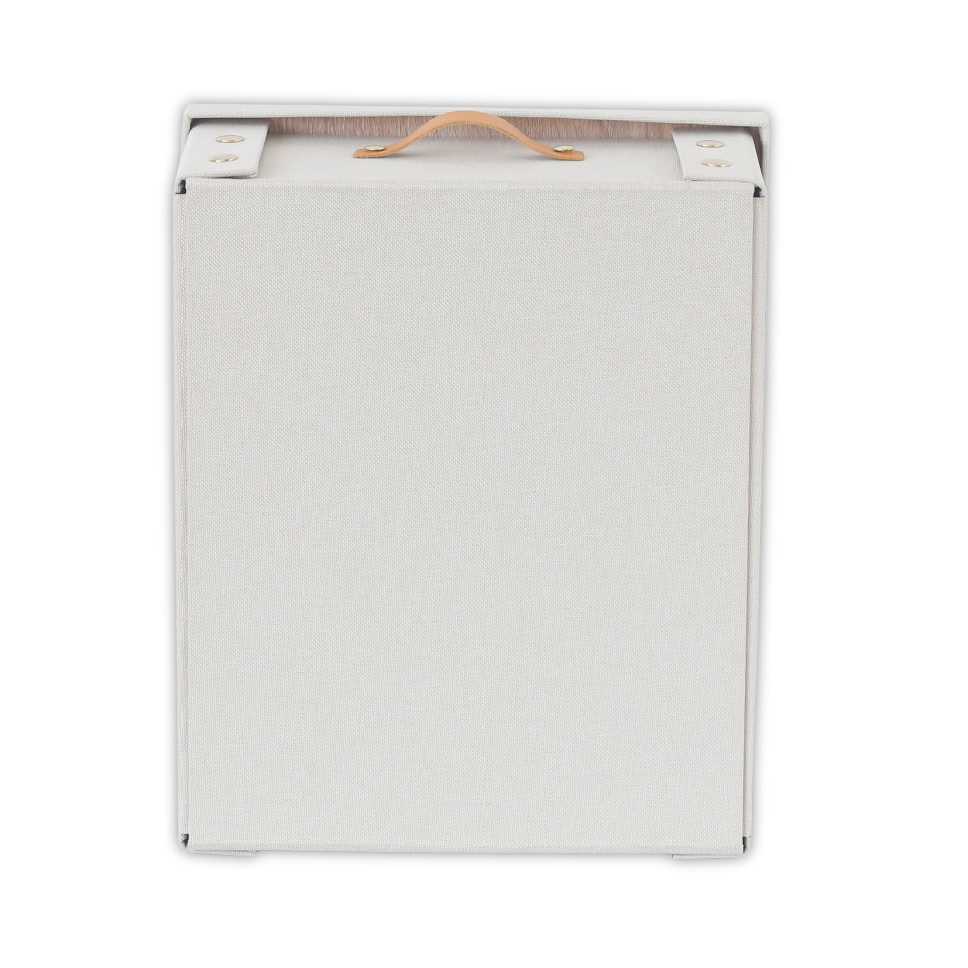 CAJA PLEGABLE FORRADA EN LINO MANIJA DE MADERA (L)