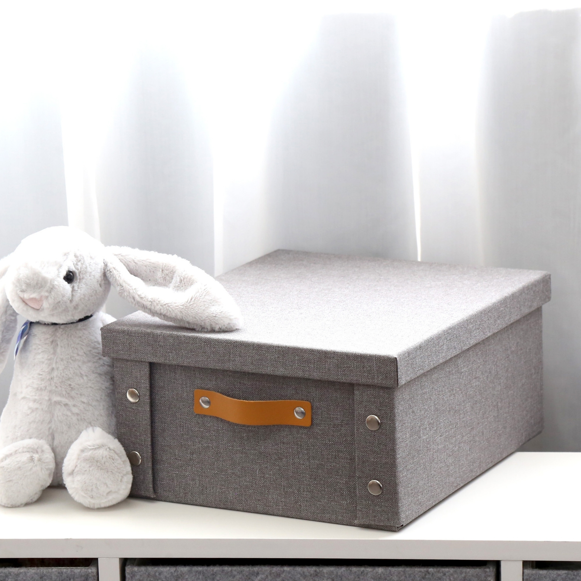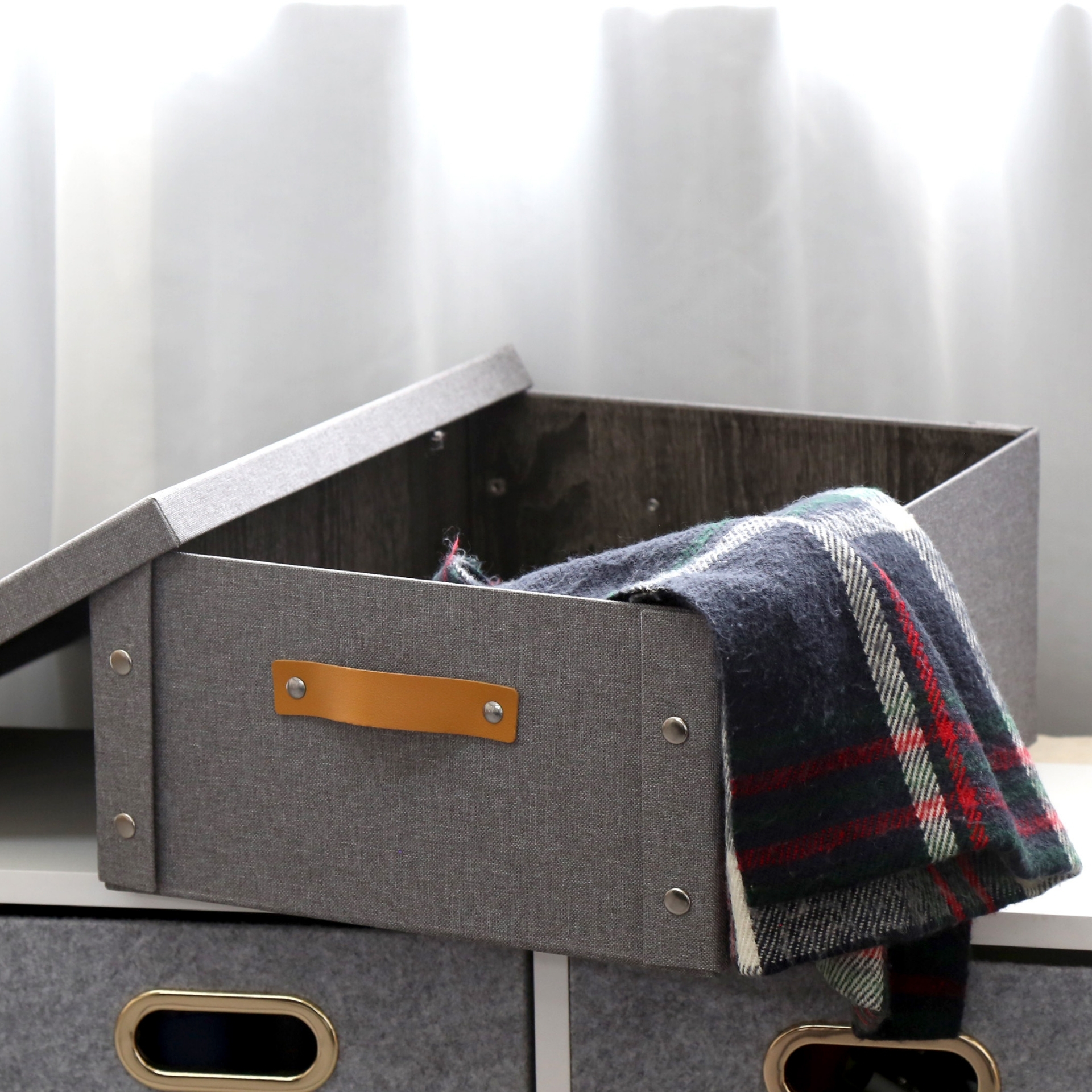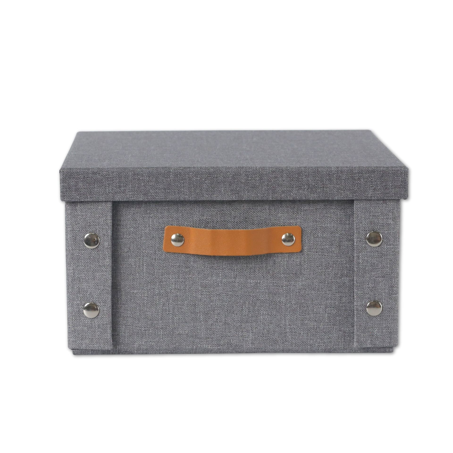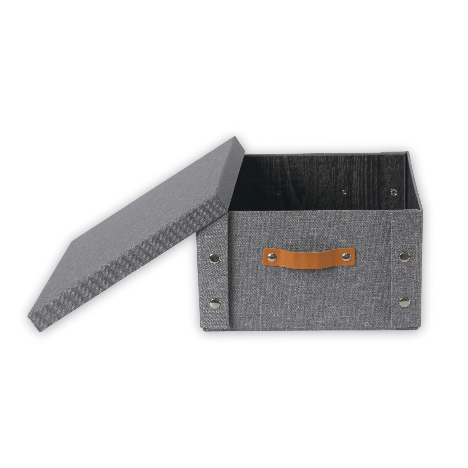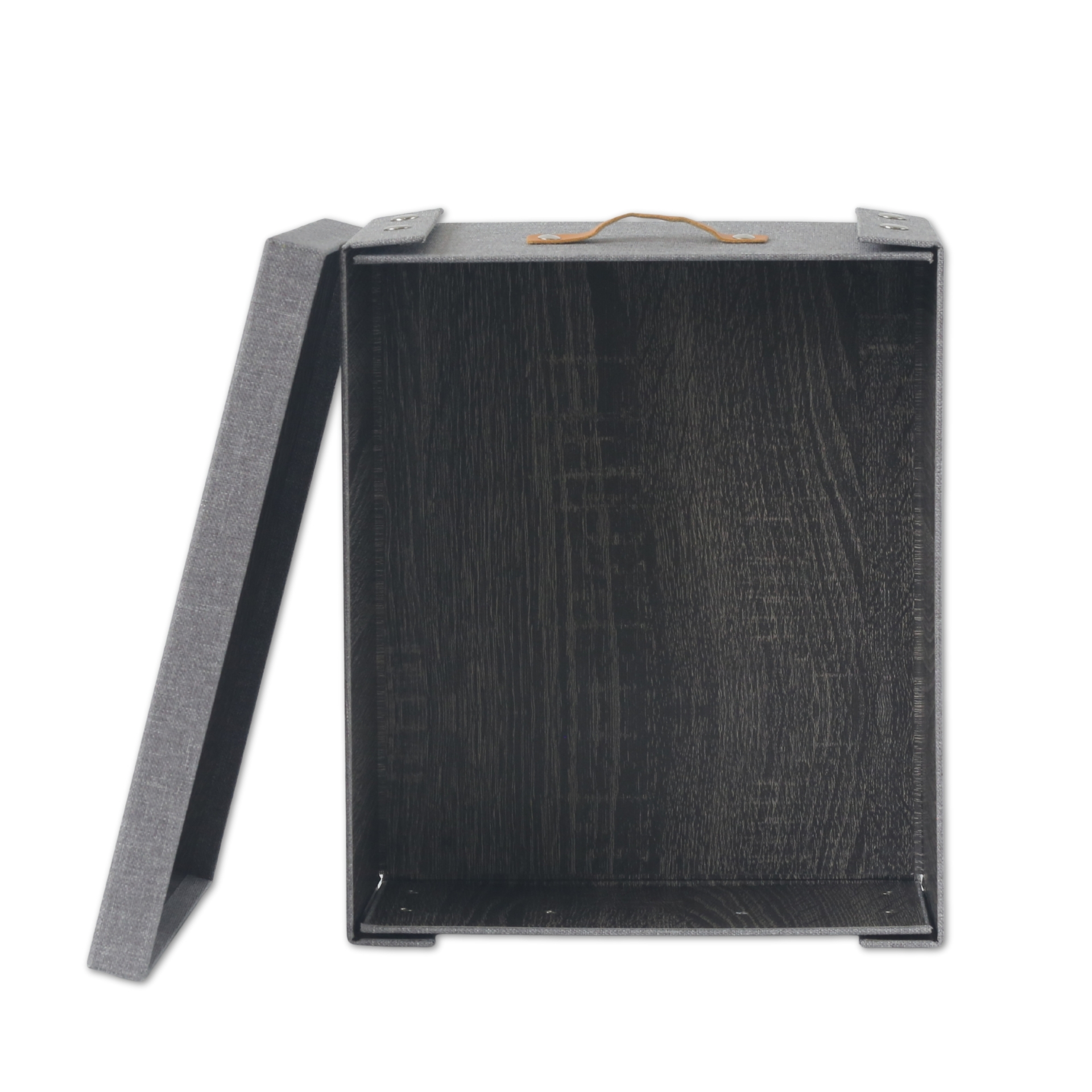 CAJA PLEGABLE FORRADA EN LINO MANIJA DE MADERA (L)